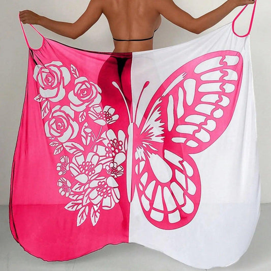 Womens' Butterfly Print Swimwear Beach Scarf Mesh Swimwear for Fine Women Female Bathing Suit Beach Wear